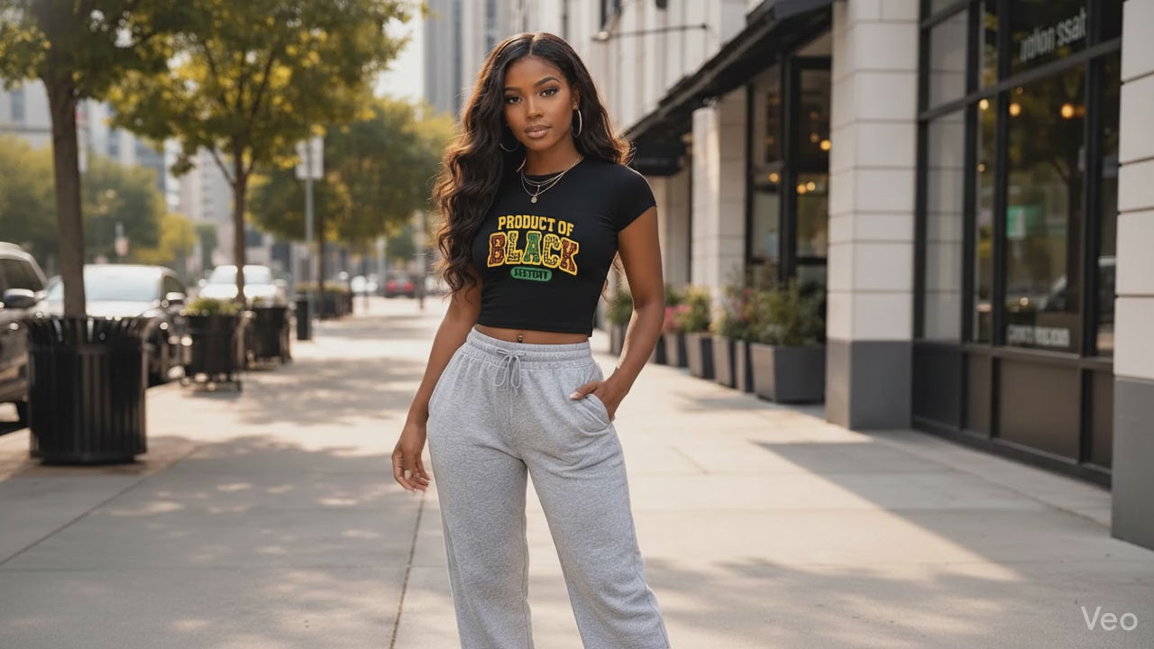 This powerful crop tee proudly represents resilience, culture, and history. Featuring the statement “Product of Black History,” it’s designed for those who understand that Black history lives on—every day, in every generation. Clean, confident, and intentional, this tee makes a statement without saying too much.